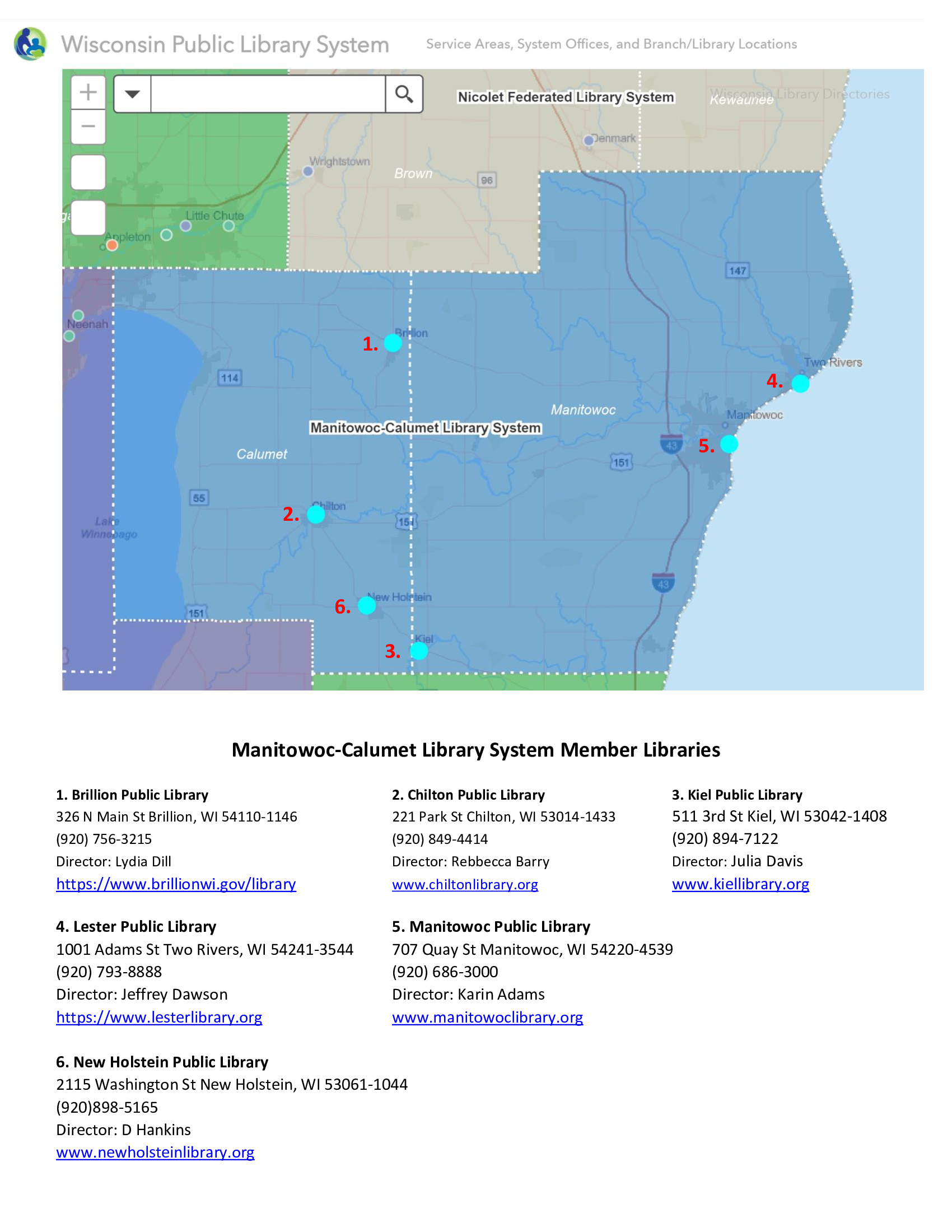 Manitowoc-Calumet Library System Directory